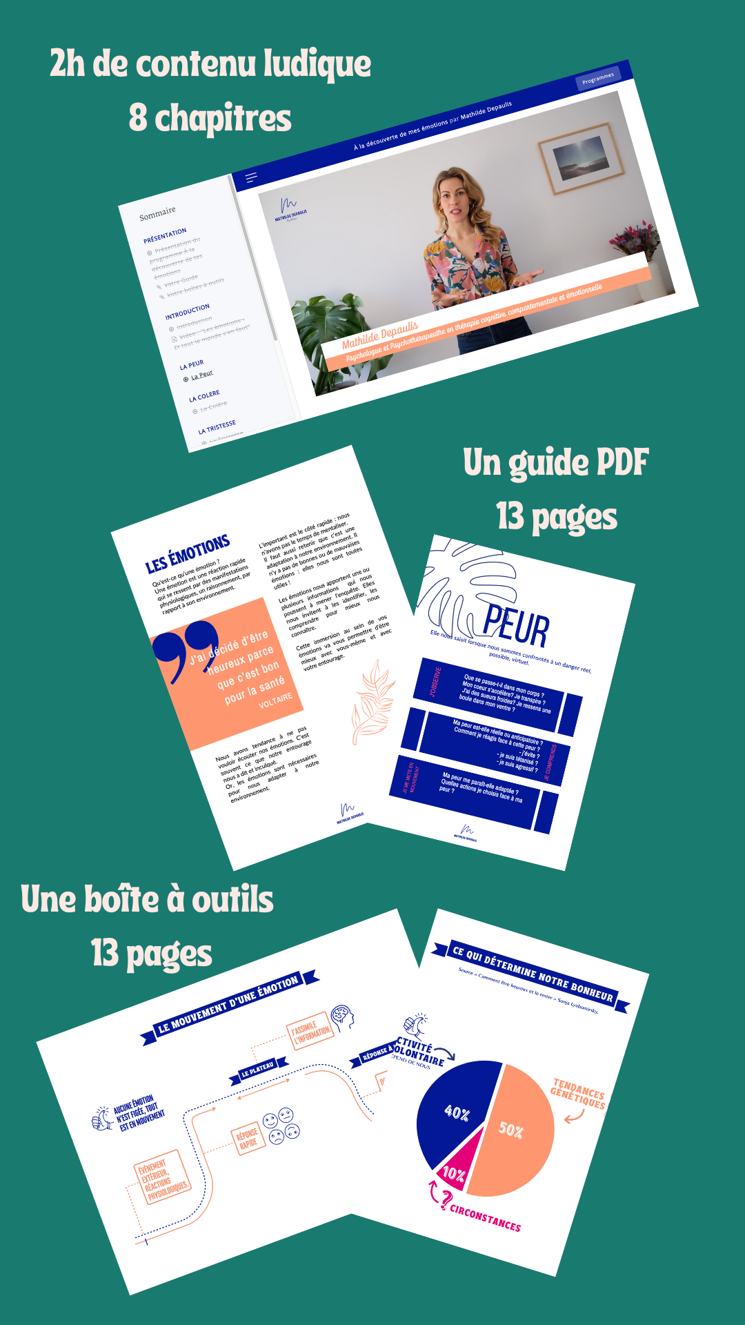 À travers ce programme, tu vas découvrir tes émotions pour mieux les "gérer", les accueillir grâce à des outils psychologiques que j’utilise au quotidien avec mes patients.